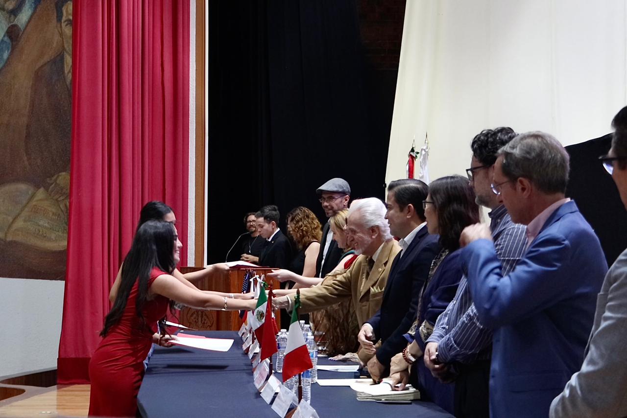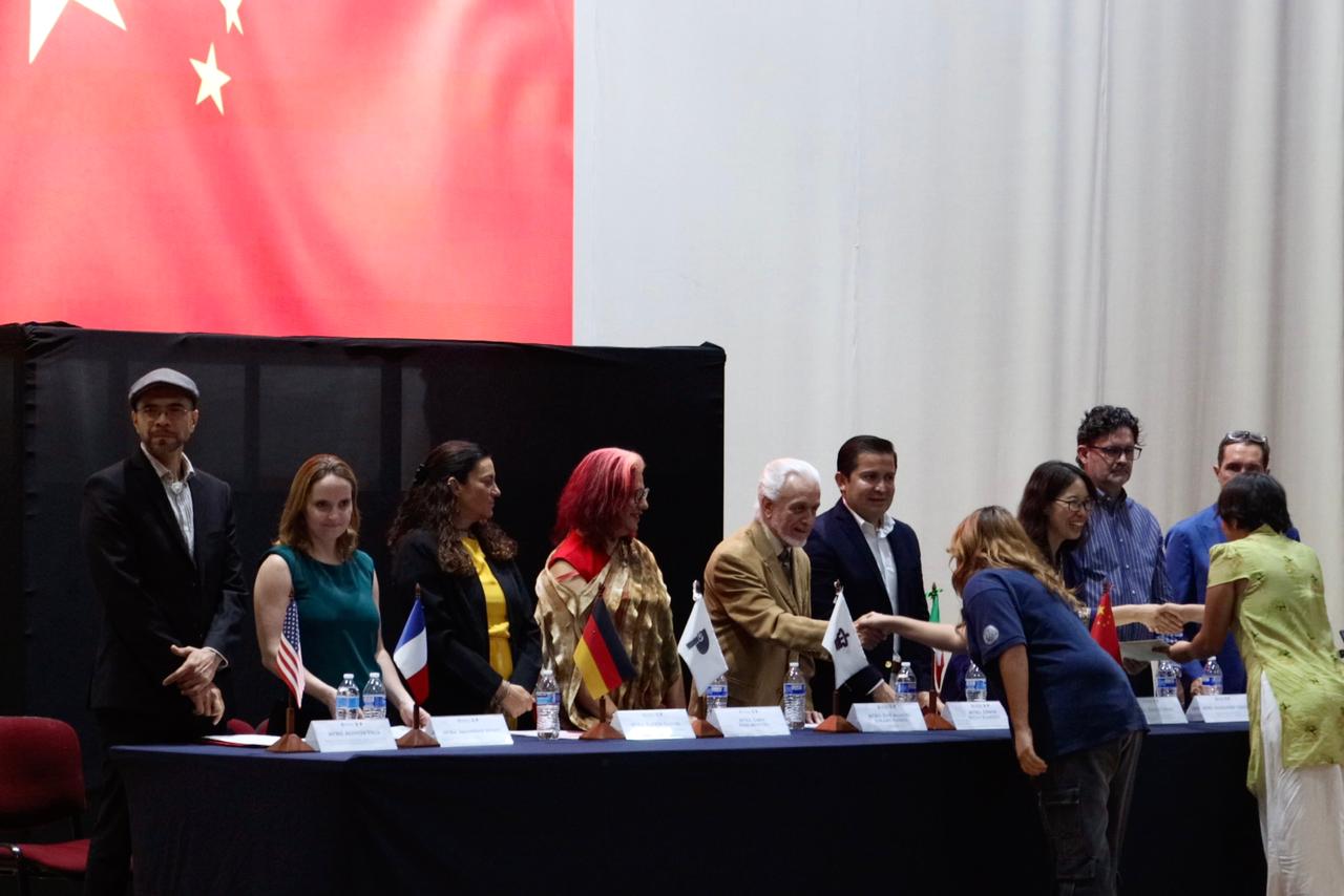 El programa avanzó con la entrega de los certificados de Chino Mandarín. Tras una intervención artística con el tema "爱人失踪" (Amante Desaparecido) por los estudiantes de la TAE, la maestra Jingui Cheng, directora del Instituto Confucio de la UdeG, destacó el creciente interés por el chino, impulsado por el rápido desarrollo económico del país asiático.