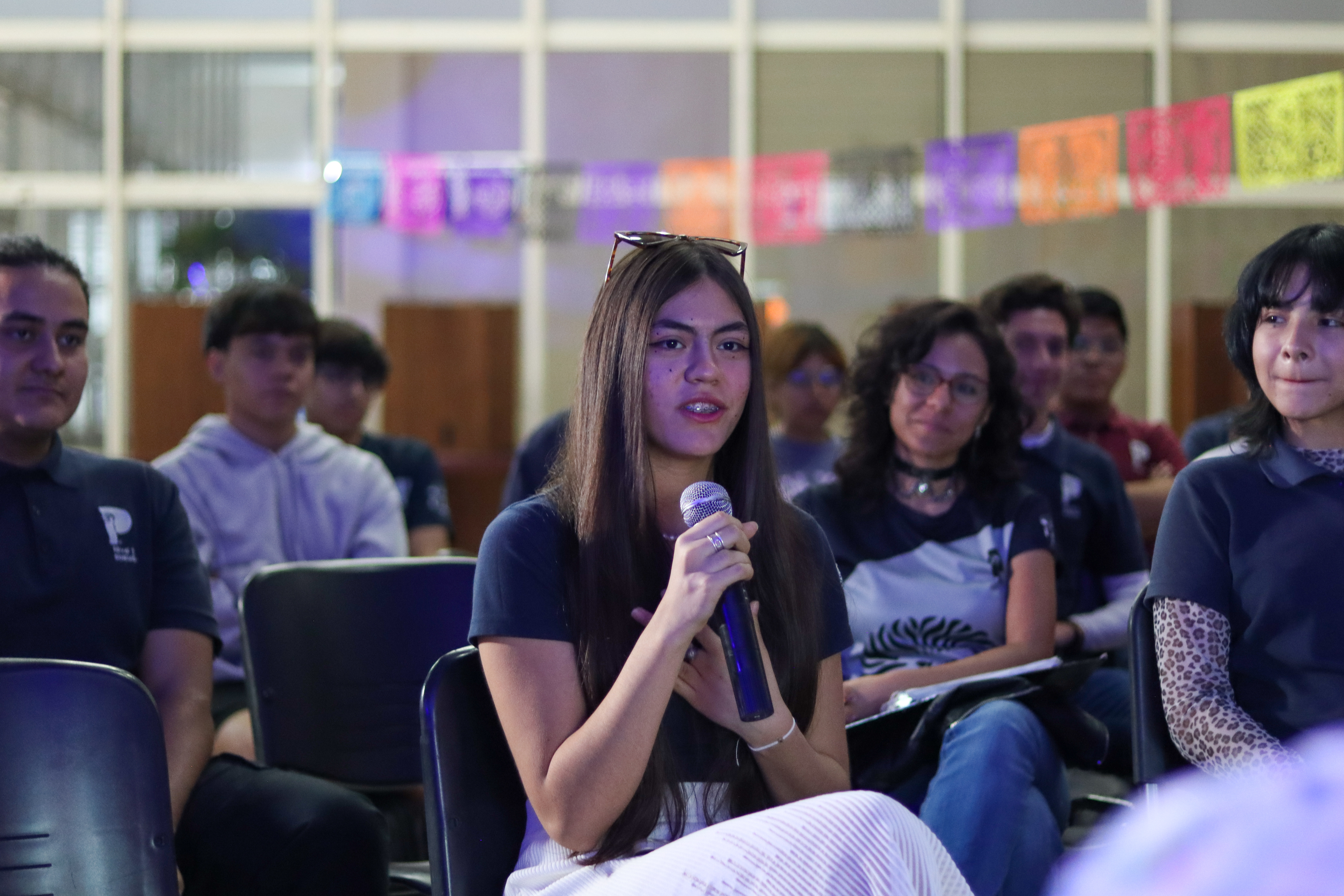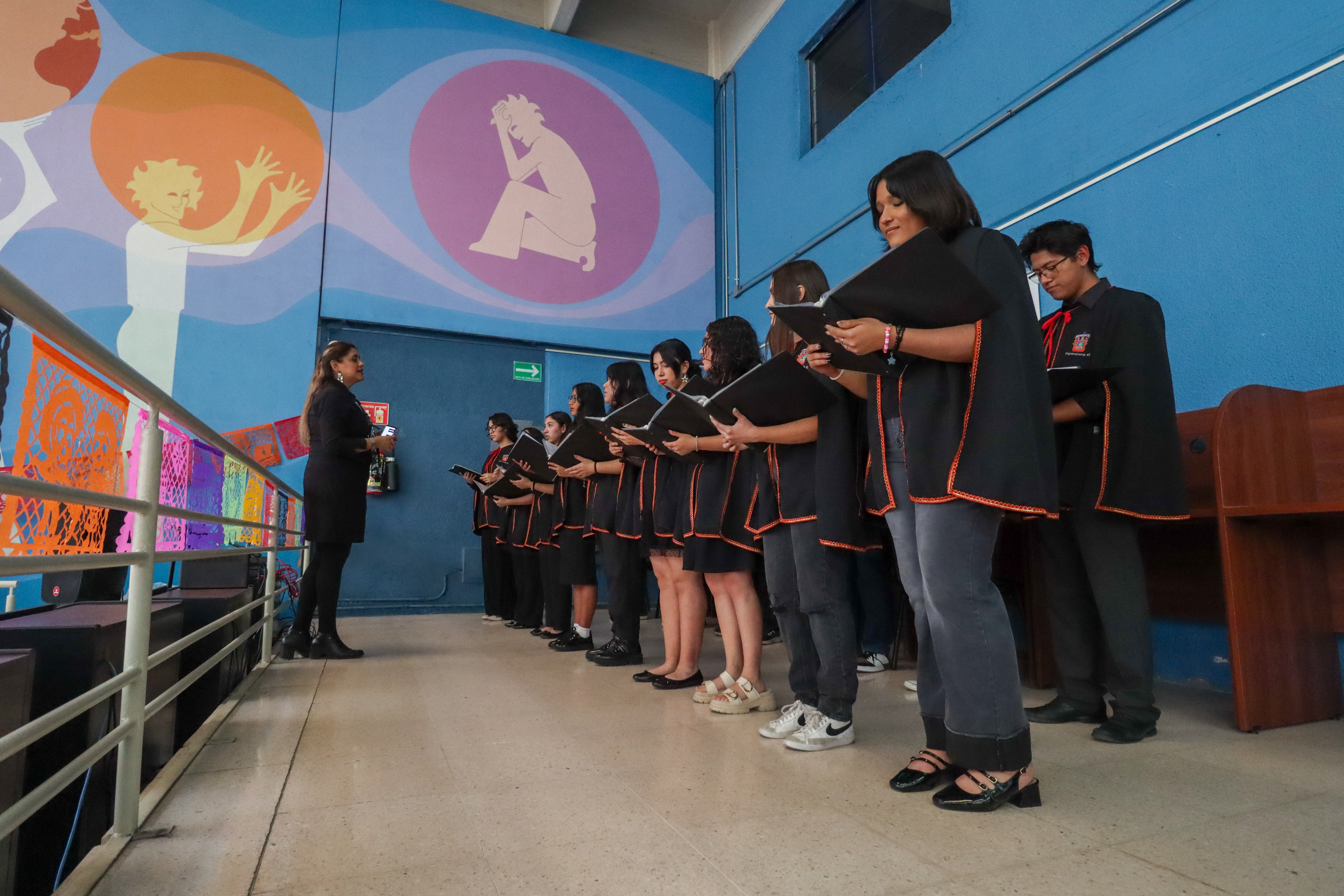 El evento abrió con una sorpresa diseñada para sumergir a la autora en la cultura local: el Coro de la Preparatoria 5, bajo la dirección artística de la maestra Jessica Campa, tomó el escenario para interpretar La Bruja. Esta pieza más allá de ser solo una muestra de aprecio y talento estudiantil, tejió una atmósfera de intimidad perfecta para el diálogo posterior.